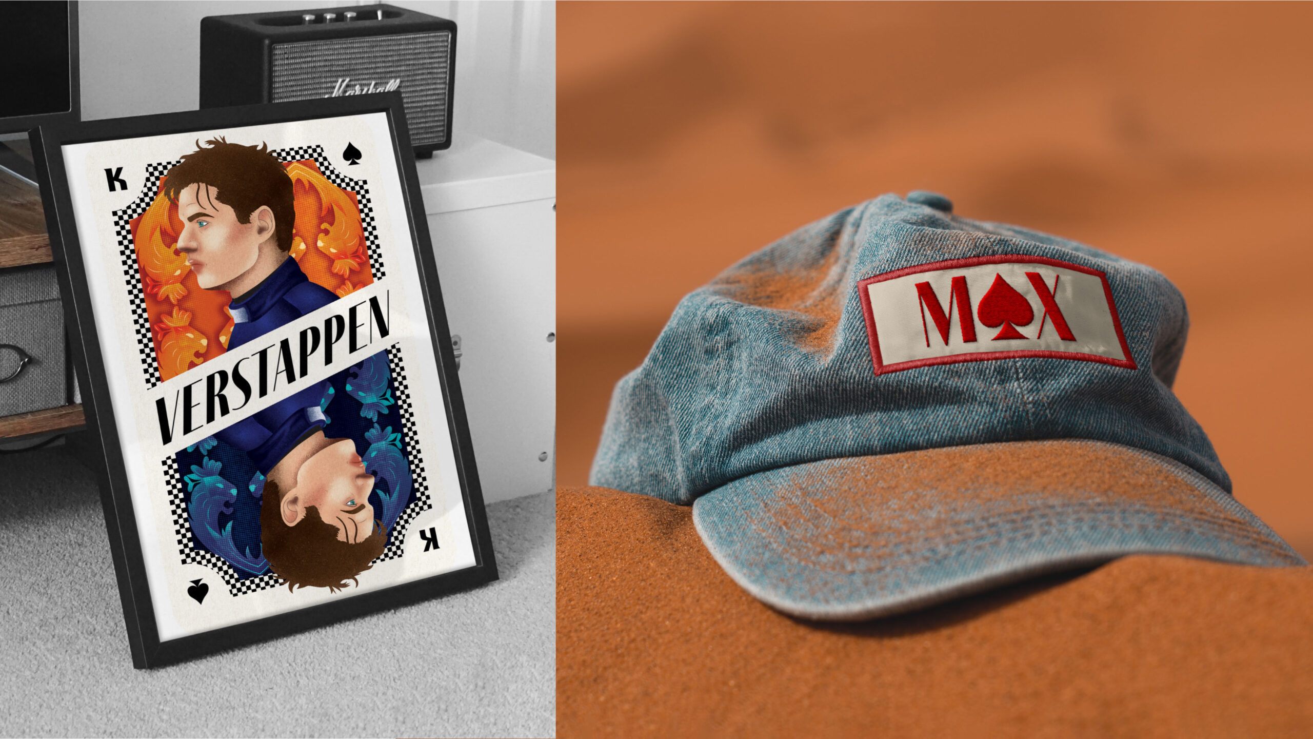 Commissioned by The Red Flags Podcast for the Las Vegas Grand Prix, this design puts Max Verstappen at the centre with a bold “fire and ice” visual theme, reflecting the intensity and precision of his driving style. Lion imagery reinforces both his Dutch roots and the aggressive dominance that earned him the nickname “The Dutch Lion.”